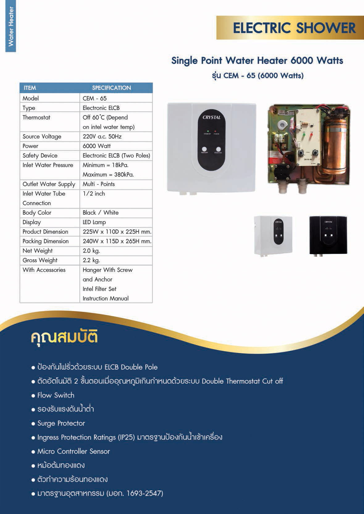 เครื่องทำน้ำร้อน Bluedenki Crystal Series 6000 วัตต์